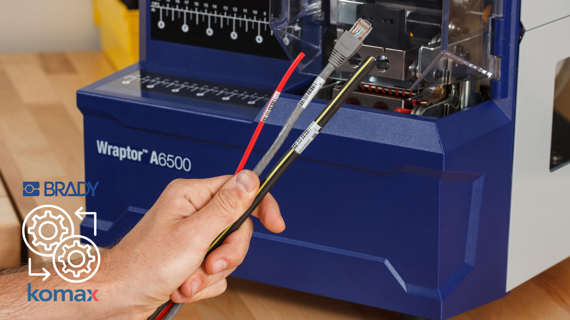 De BradyPrinter Wraptor A6500 Printer-applicator voor wikkellabels biedt nu nog meer automatiserings-mogelijkheden. Verhoog de snelheid van workflows verder door de Wraptor te integreren met een snij- en stripsysteem van Komax voor snellere kabelvoorbereiding en -verwerking.